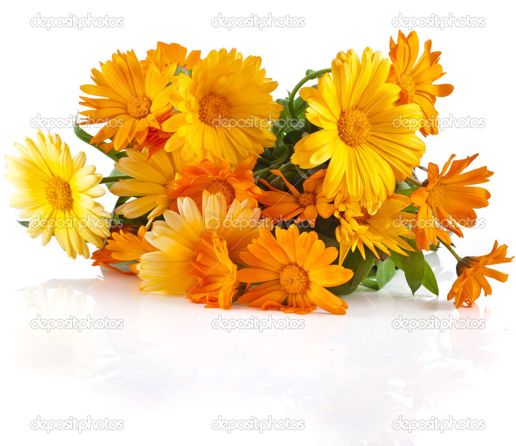 Description: Orange flower bouquet heap of calendula close up macro Isolated on
